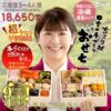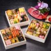 栗くりきんとん/マカダミアナッツ風味/フルーツチーズ/彩りきぬた巻/コトコト煮込んだ野菜の煮物7種/恵那どりの鍬焼(くわやき)/だし巻玉子/山牛蒡と春菊の胡麻和え/西洋野菜チコリ/黒毛和牛のローストビーフ/飛騨牛の八幡巻