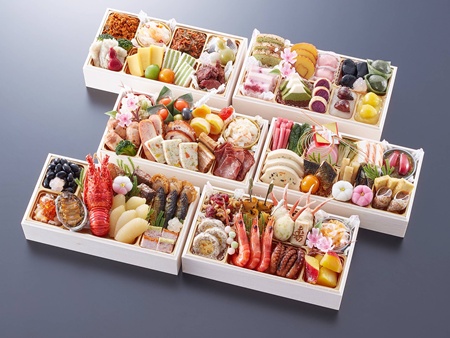 年に一度の特別な日を彩る、見た目も味も極めた与段重。伊勢海老、あわび、キャビア、フォアグラなど豪華食材を堪能できる贅沢おせち。料亭継承の伝統の技と味が楽しめます。
