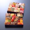 スモークサーモン香草オイル漬け/くるみ甘露煮/赤海老黄金和え/黒豆コーヒー風味/チェダーシュリンプサラダ/リンゴ金団レーズンのせ/海老袱紗焼き/紅白蒲鉾/鶏とピスタチオのフォアグラテリーヌ/パートドフリュイフランボワーズ/パートドフリュイグレープフルーツ/にしんおかか和え/蟹風味チーズテリーヌ/スモークサーモントラウト/ライブオリーブ/オニオンマリネ/クリームチーズ蜂蜜ナッツ和え/鰆昆布〆/いくら醬油漬け/紅白なます/トリュフフロマージュ/生ハム/蟹爪旨煮/鶏のポルチーニパイ包み/ムール貝雲丹ソース/ドライトマト/ロブスター旨煮/クラッシックプディング(苺)/クラッシックプディング(抹茶)/若鶏マスタード焼き/海老クリームチーズ焼き/合鴨の燻製/金柑蜜煮/さつまいも蜜煮/蛸の煮つけ/湯葉生姜煮/椎茸旨煮/絹さや/数の子醬油漬け/松前漬け/梅貝含め煮/鮭幽庵焼き/真鯛蒸し焼き/手まり餅/鮑ふっくら煮/海老艶煮/梅花人参含め煮/甘栗甘露煮