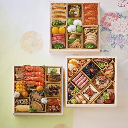 和・洋・和三段重「桜」は、選りすぐりの美味を堪能して和の重と洋の重をたっぷり楽しめる三段重。お正月らしく、和の食材を存分にご堪能いただけるよう、一段目、三段目に和の食材が詰まっていて、二段目には、華やかな洋風の食材が入っています。 シーンに合わせて洋の重は年末の乾杯のお供に、和の重は、お正月にと様々な楽しみ方ができる日本酒やワインと相性の良い品目を盛り込んだ、ボリューム満点の大満足の三段重おせちです。
