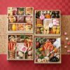 黒豆煮/紅白かんざし/花餅紅梅/伊達巻/紅白蒲鉾/蓮根旨煮/たたき牛蒡/梅型こんにゃく/海老芋旨煮/鮑旨煮/梅花れんこん/刻み昆布柚子風味/いかジュレ和え/丸穴子南蛮漬/北海道産数の子/焼湯葉柚香西京巻/牛肉八幡巻/三色串/金柑蜜煮/カマス梅肉南蛮/鰆黄金焼/有頭海老/いくら?油漬/つぶ貝とびっこ和え/花餅白梅/きんとん/渋皮栗甘露煮