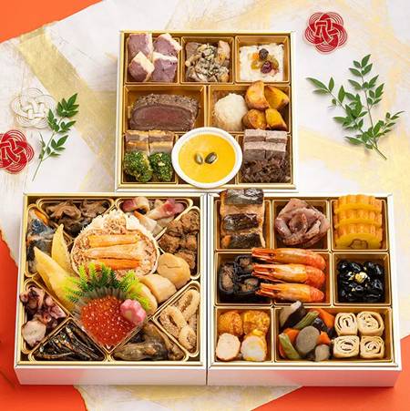 小樽産春にしんマリーネ/北海道産つぶしぐれ煮/北海道産北寄貝の山わさび漬/北海道産まだら子と昆布の旨煮/北海道産細切昆布/噴火湾産おおずわいがに甲羅盛/北海道産味付数の子/北海道産醤油いくら/オホーツク産帆立焼き/北海道産小麦の梅麩/増毛産たこのやわらか煮/阿寒湖産わかさぎ田作り/鹿追産切干大根たらこ和え/知内産かき佃煮