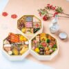 小樽産春にしんマリーネ/北海道産つぶしぐれ煮/北海道産北寄貝の山わさび漬/北海道産まだら子と昆布の旨煮/北海道産細切昆布/噴火湾産おおずわいがに甲羅盛/北海道産味付数の子/北海道産醤油いくら/オホーツク産帆立焼き/北海道産小麦の梅麩/増毛産たこのやわらか煮/阿寒湖産わかさぎ田作り/鹿追産切干大根たらこ和え/知内産かき佃煮