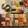 ふかひれ風中華くらげ/イカの松前漬(生姜入り)/若桃甘露煮/彩り柚子くらげ/チキン三昧/田作り/たこの旨煮/イカの燻製サラダ/栗甘露煮/伊達巻/花餅白梅/花餅紅梅/豚バラ黒糖角煮スライス