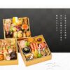 紅白なます/若桃甘露煮/湯葉の柚香煮/合鴨ロース/クランベリーくるみ/ふかひれ風中華くらげ/たこの旨煮/味付数の子/田作り/人参と大葉のカニ団子/牛タンパストラミ/数の子と枝豆のサラダ/国産黒糖焼き豚/北海つぶわさび/有頭海老の艶煮/手羽元黒胡椒焼き/海老のチリソース煮/照焼帆立/小鯛西京焼/伊達巻/栗甘露煮/黒豆/コハダの粟漬け/味付子持イカ/チキン三昧/牛すじこんにゃく/あっさりザーサイ/鶏中華テリーヌ