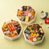 ホテルオークラ 和洋中おせち 三段重(冷凍)は、和洋中バラエティに富んだ食材を彩り鮮やかに盛りつけられた名門ホテルオークラ監修の贅沢和洋中おせち。 柔らかく焼き上げたカラスガレイの西京焼や薫り高いカニ爪スモーク、食べ応えのある海老チリソースなど三世代それぞれが自分の好きなものを探せるおせちです。ホテルオークラ 和洋中おせち 三段重(冷凍)のお品書き