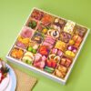 メープルくるみ、ミートパイ包み、スタフドオリーブ、ピテットライプオリーブ、キャロットラペ、若鶏鳴門巻、ローストビーフスライス、にしんコンフィ、若桃甘露煮、たこのバジルソース、彩り野菜のテリーヌゆば巻、合鴨スモーク