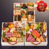 鰆柚庵焼、栗甘露煮、穴子八幡巻、棒だら、里芋田楽、高野豆腐(寿)、バイ貝、蝦夷鮑、陣笠、有頭海老、絹さや、人参紅梅、大根白梅、牛肉味噌漬け、鰹くるみ、すり身団子(ピンク)、すり身団子(白)、サーモン柚庵焼、手毬餅