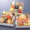 白梅羊羹/北海道産やわらか黒豆煮/北海道産いくらの醬油漬け/国産かぶらの柚子甘酢漬け/焼きロブスター/鮑のうま煮/国産ぶりの照焼/花梅餅/特選味付き数の子/青森県産帆立の直火焼/鮎甘露煮/焼イカとウニの真丈/焼イカと枝豆の真丈