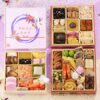 国産紫キャベツのピクルス/若鶏ワイン焼き/メープルくるみ/ベーコンチーズオードブル/手羽元黒胡椒焼き/彩りマリネ/数の子と枝豆のサラダ/さつまいも甘露煮/チーズごぼう/ブロッコリーの彩りレモンサラダ/チーズ焼きイカ/三色雪玉餅