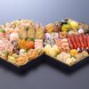 鶏腿肉西京焼/真鱈子昆布旨煮/蛸梅酢和/松前漬/イクラ醬油漬/本ズワイ蟹柚香漬/牛蒡西京漬/田作/黒豆 金箔/紅白膾/海老サーモン求肥巴巻/胡桃飴煮/梅花羊羹(重複)