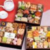 ぶり照焼/錦玉子/梅真丈/鶏の麹焼/ふくさ焼/いくら醤油漬/穂先筍煮/椎茸旨煮/湯葉旨煮/烏賊松笠白焼/金目鯛西京焼