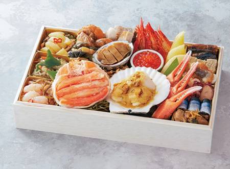 北海道産にしん甘露煮/北海しまえび/ぶり照り焼き/北海道産帆立のうま煮/数の子松前漬/たらこの山椒煮ゼリー寄せ/北海道産味付け数の子/いくら醤油漬/煮あわび/帆立貝ひもの佃煮/帆立包み昆布/なますのもずく和え/真鱈の梅ソース焼き/たこ柔らか煮/紅ずわいがに爪/オホーツク海産帆立のウニバター焼き/昆布の煮付け/ずわいがに甲羅盛り(蟹みそ入)/いかの三升漬け/甘えび塩麹漬け/さんまの酢漬/かきのしぐれ煮