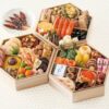 SL Creationsの「加賀【和風二段重】」は、北陸の豊かな食材を贅沢に使用したおせちです。定番の栗きんとんや伊達巻、黒豆に加えて、氷見牛のしぐれ煮や北陸の祝肴に欠かせない甘えびをまるごと甘露煮など、北陸ならではの味覚が楽しめます。全29品目と少人数向けながらも品数が豊富で、数の子やいくら、まぐろなど海の幸もふんだんに盛り込まれており、満足できる内容です。冷凍便で届くため、好きなタイミングで解凍して召し上がれます。加賀【和風二段重】のお品書き