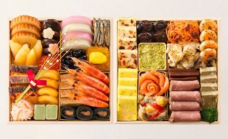 【和風】田作り/紅白かまぼこ/椎茸旨煮/紅白梅型羊羹/伊達巻/りんごきんとん(栗甘露煮)/黒豆煮/いくら醤油漬/数の子醤油漬け/ボイル海老/鶏松風焼き/あんず煮/銀鱈塩麹焼き/鮭昆布巻/よもぎ麩含め煮/なます