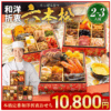 海の香蒲鉾/アーモンド田作り/九州産芝海老旨煮/いか梅酢和え/豚肉とひよこ豆の角煮/たたき牛蒡/だし巻玉子/松前漬け/菜の花のお浸し/大根焙煎胡麻サラダ/やわらか干しとまと/鳴門芋金時レモン煮